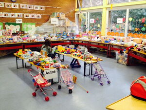 Es können Kinder-Kleidung, Spielzeug, Kinderwagen, Fahrräder etc. angeboten und erworben werden.